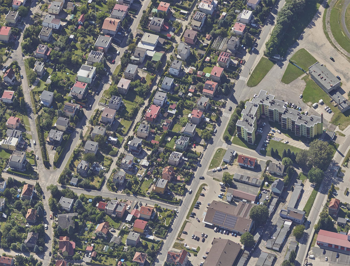 Wysokorozdzielcza ortofotomapa (5 cm). Dzięki wysokiej dokładności obrazu, mieszkańcy mogą dokonywać precyzyjnych pomiarów na mapie bez wychodzenia z domu.